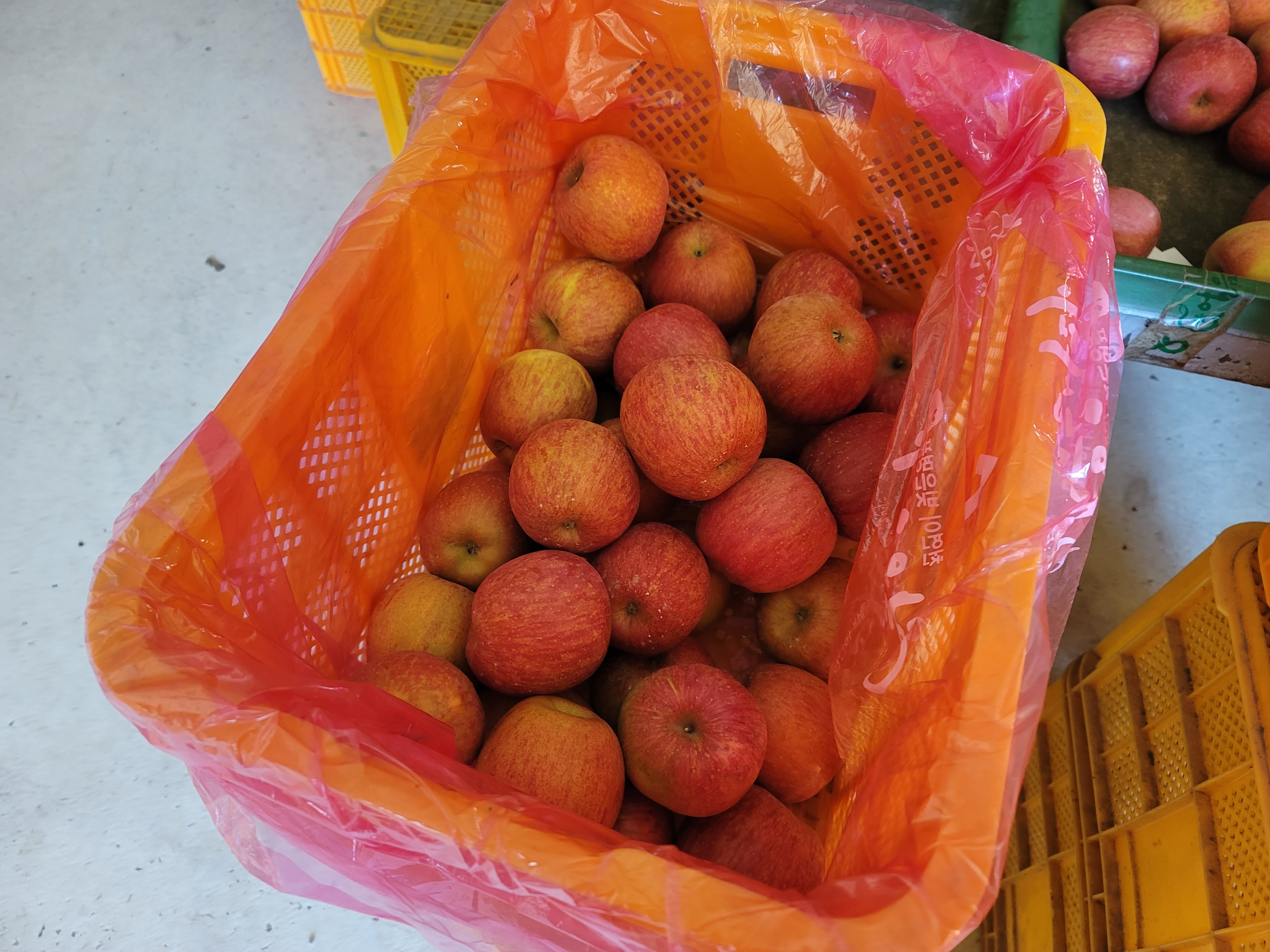 사과수확 합니다.