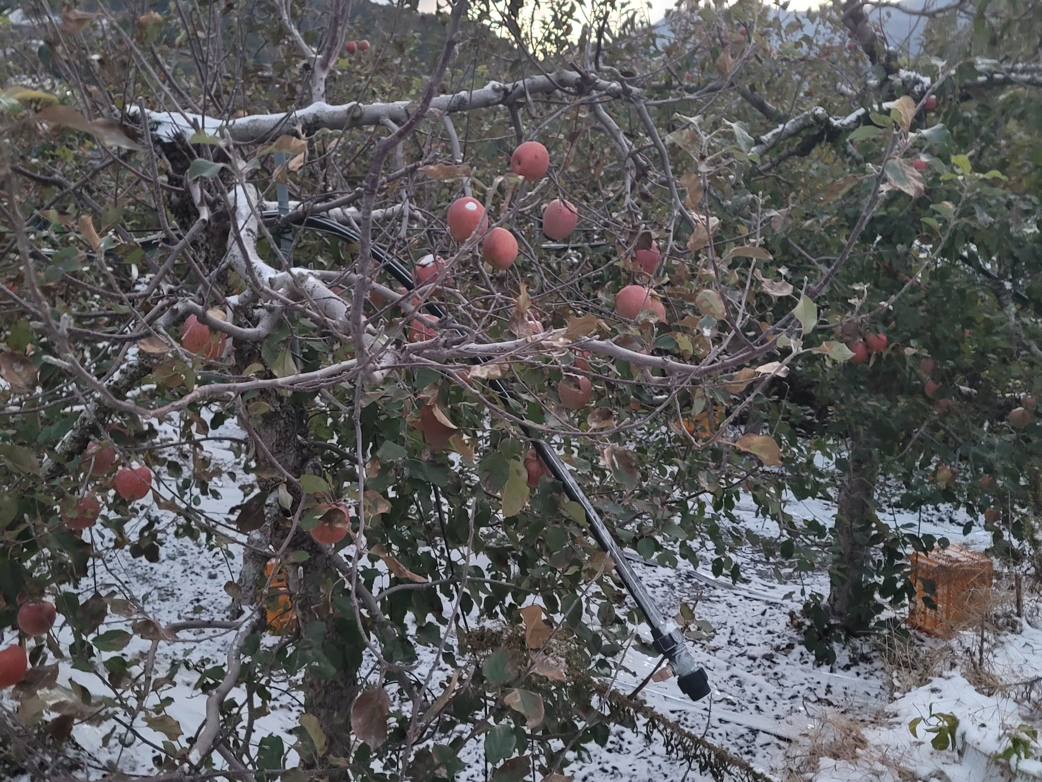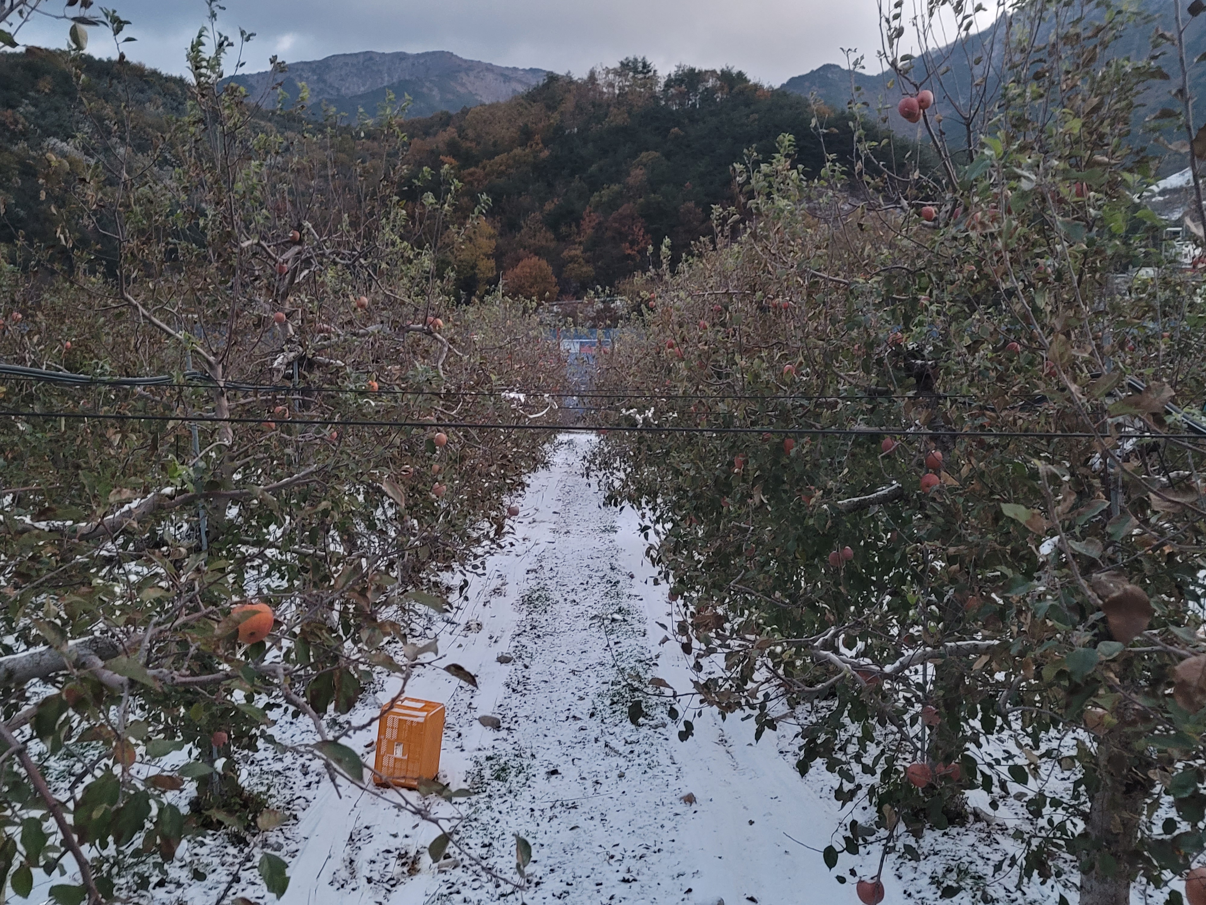 2023년 얼음골사과 11월18일 아침에 눈떠보니 눈 이 내렸네요.