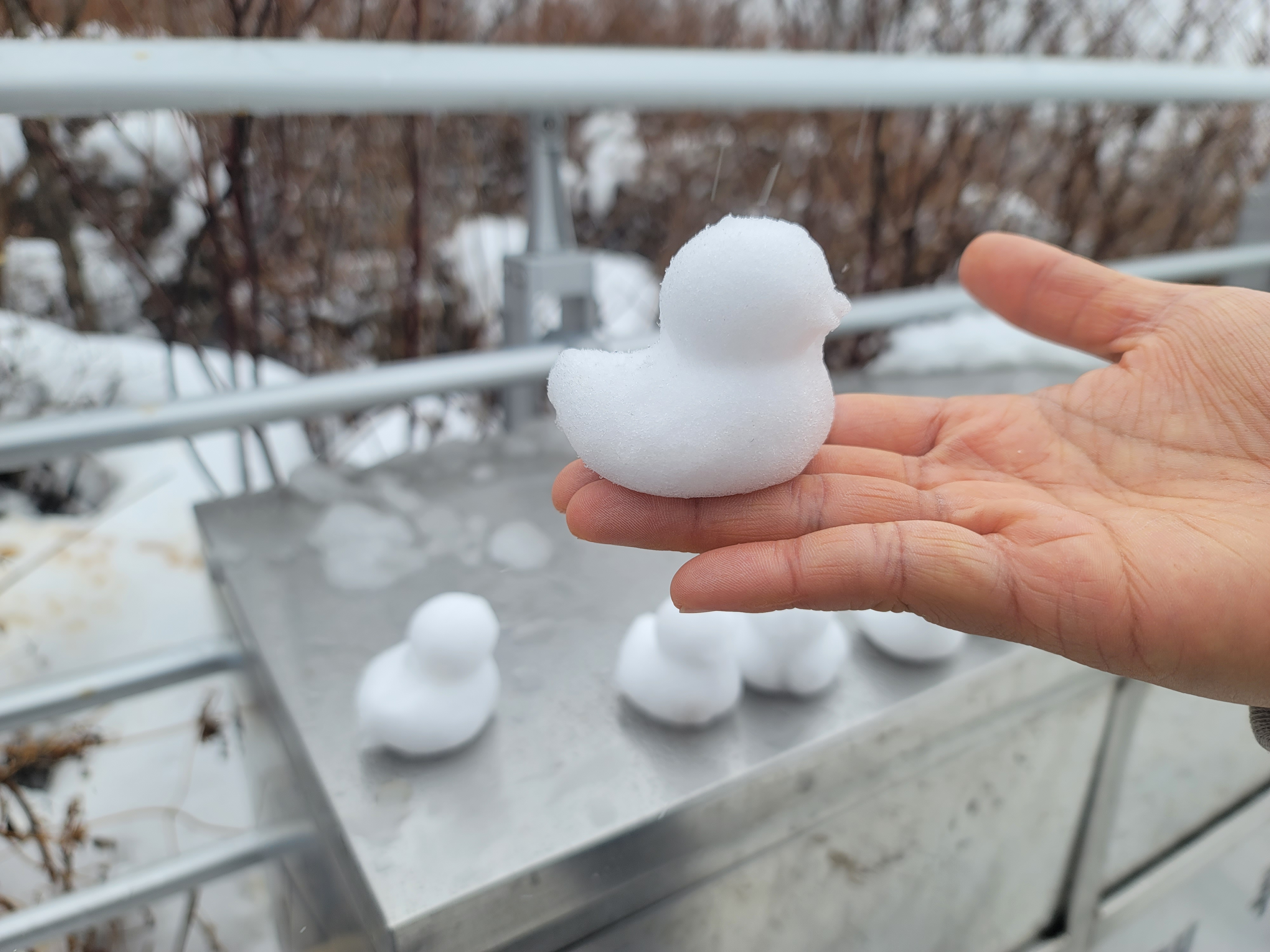 눈밭에 오리 만들고