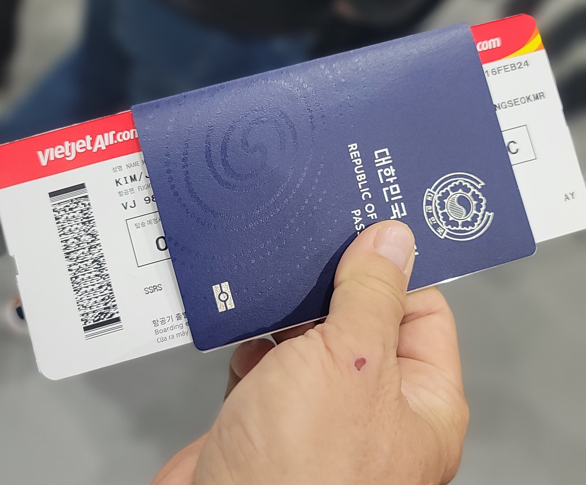 비행기표 들고 비행기탑승