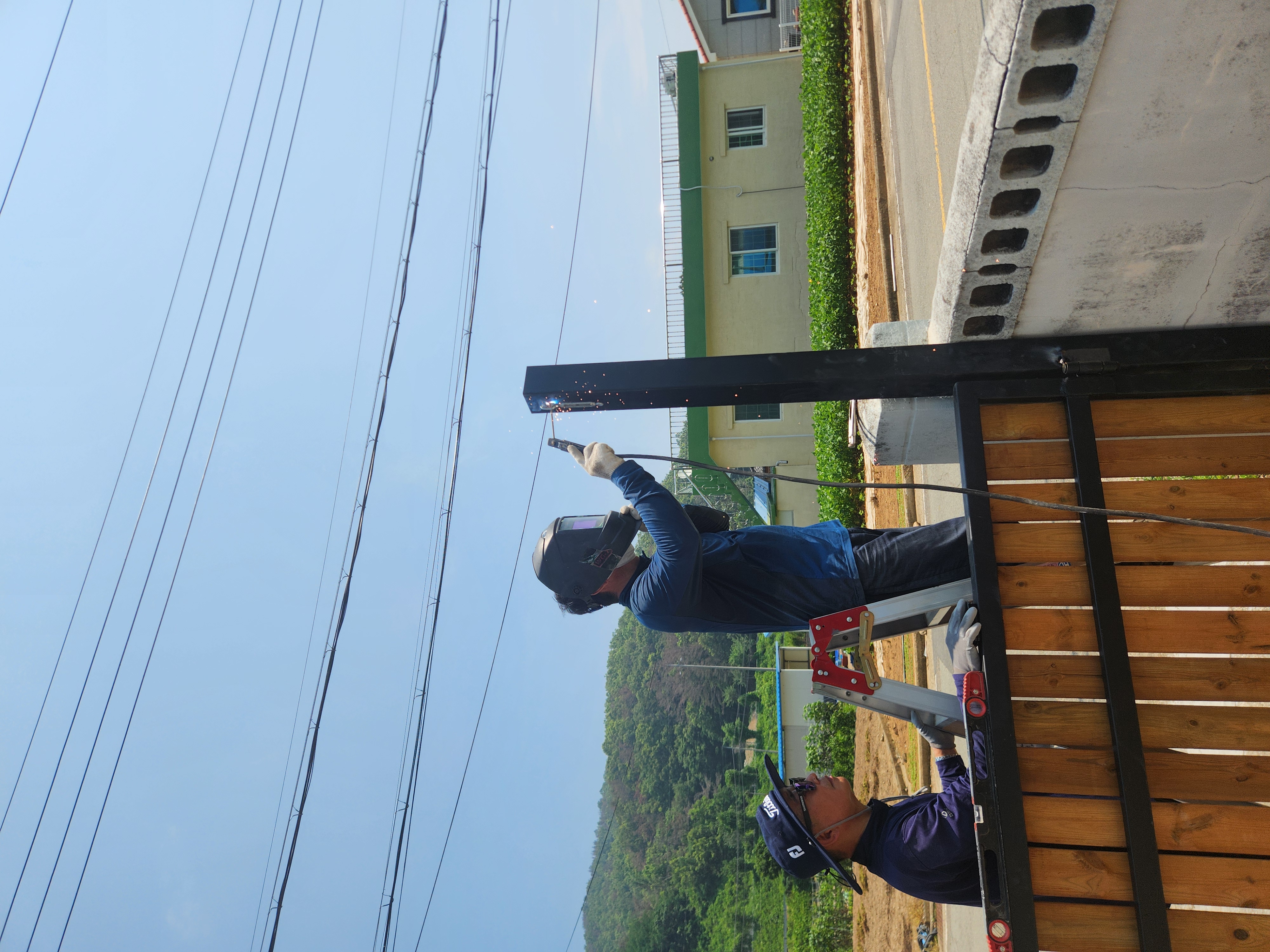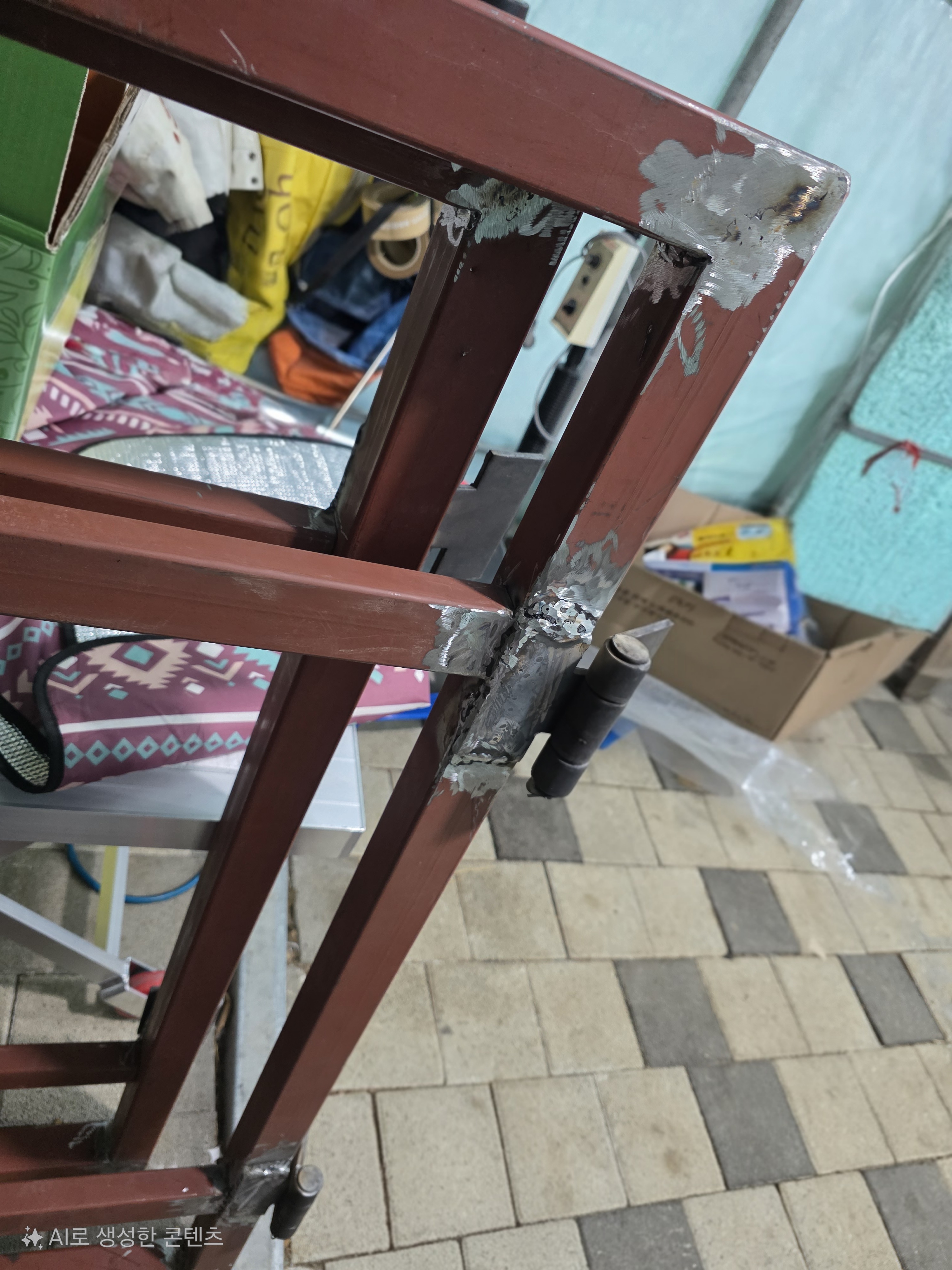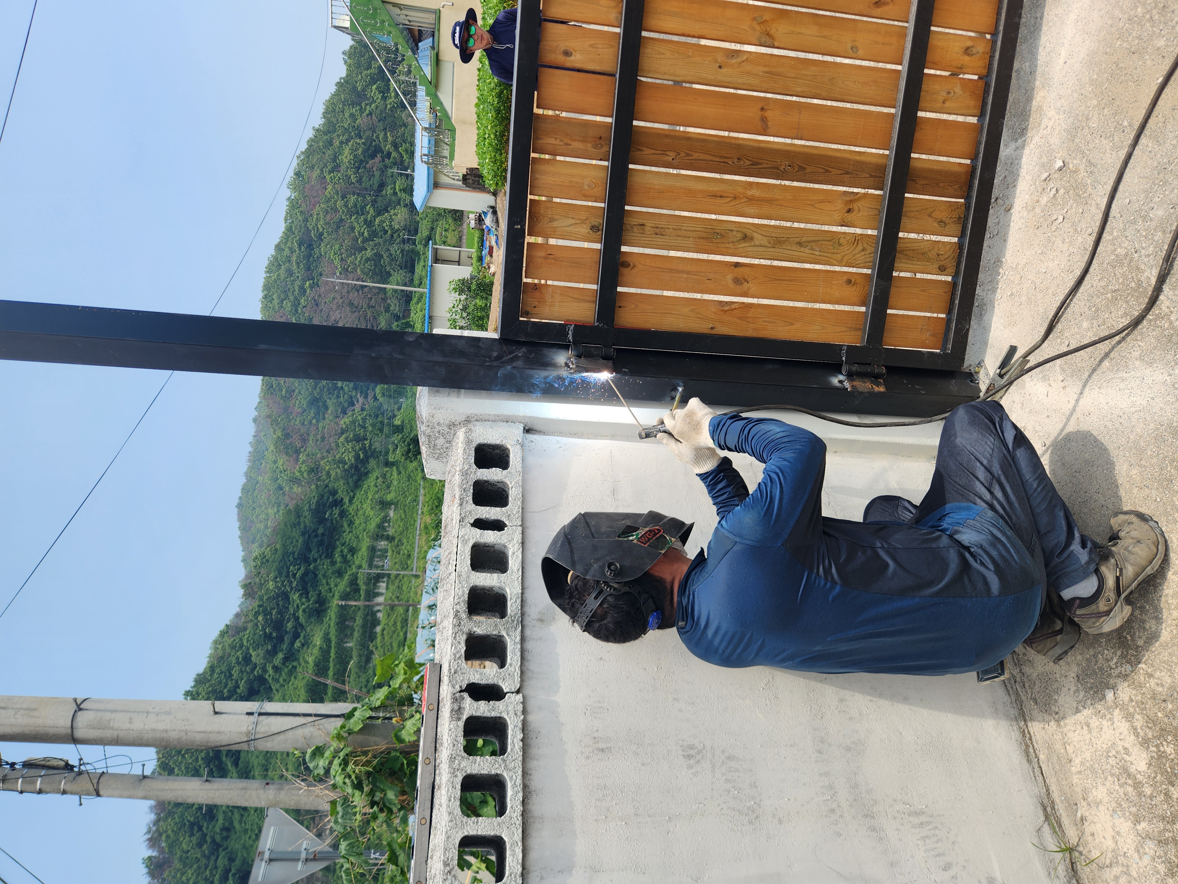 용접경첩 기둥에 용접하네요