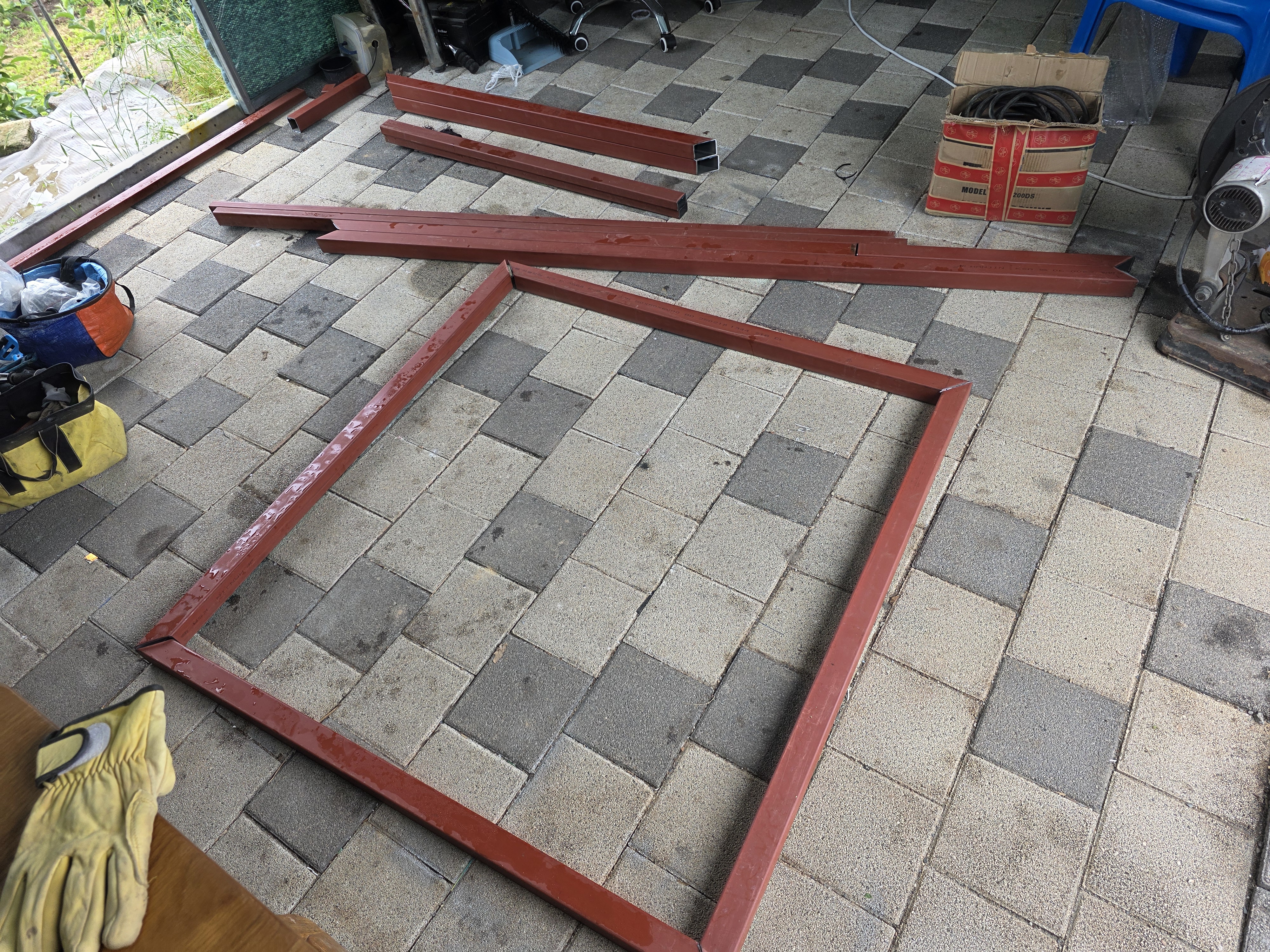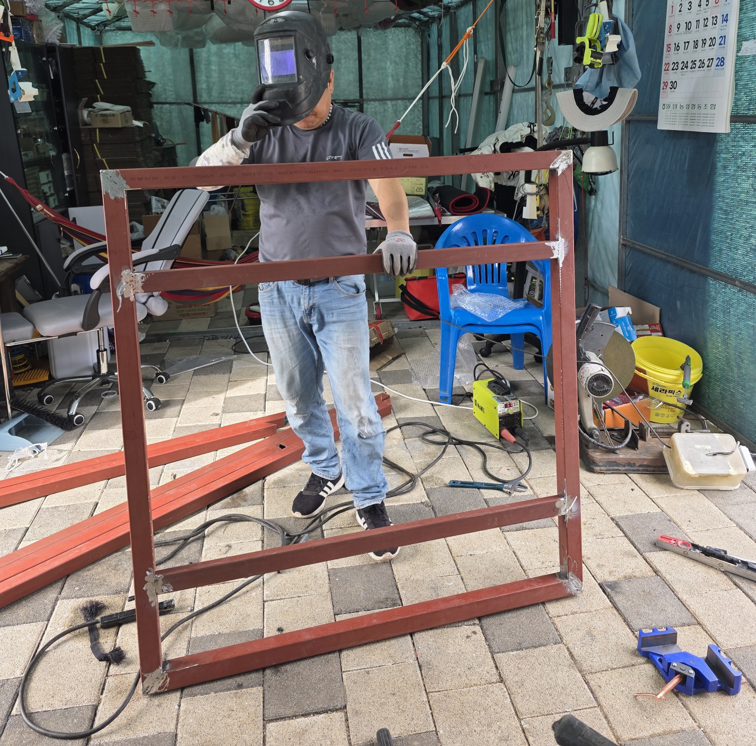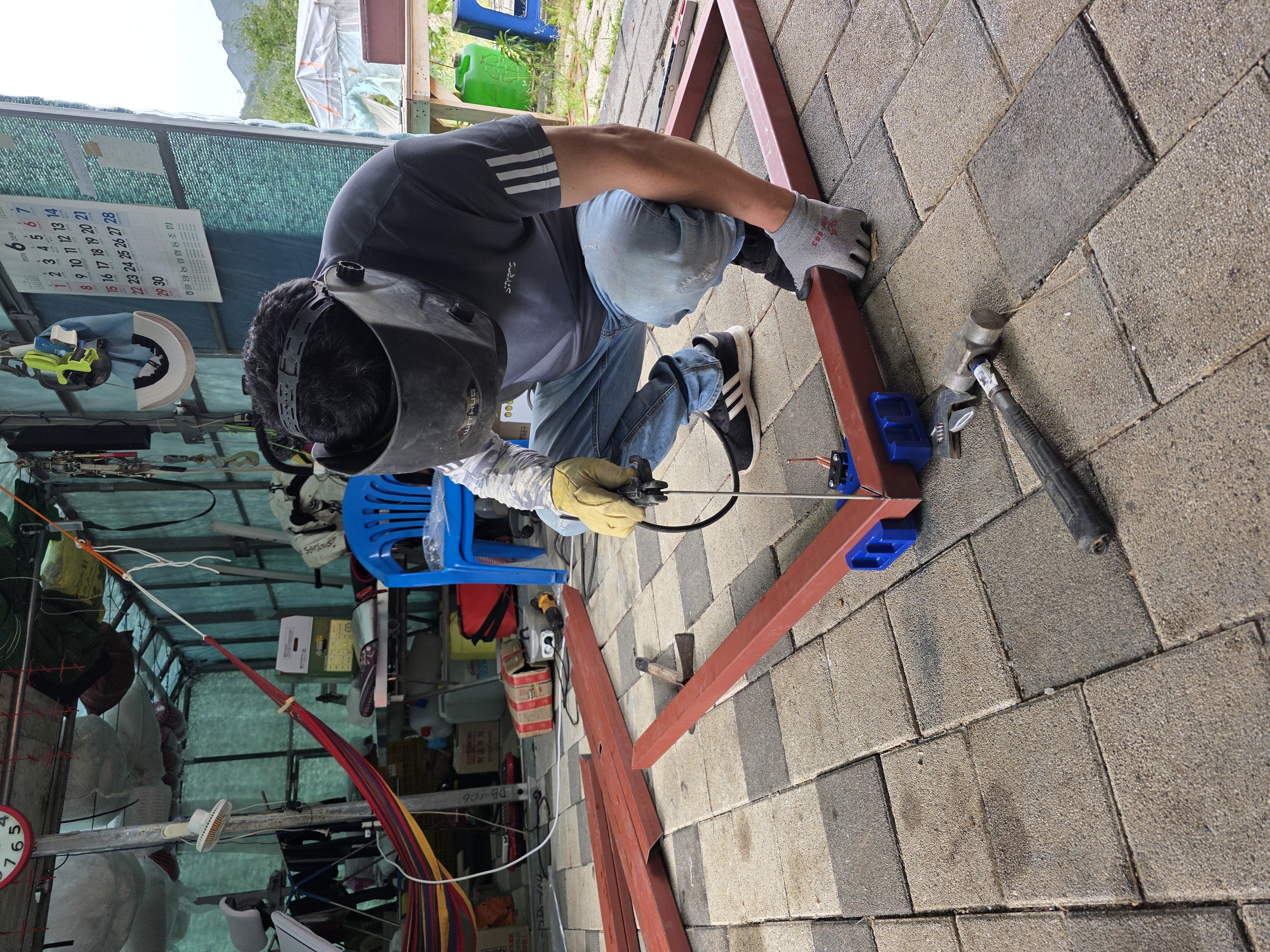 용접경첩 기둥에 용접하네요