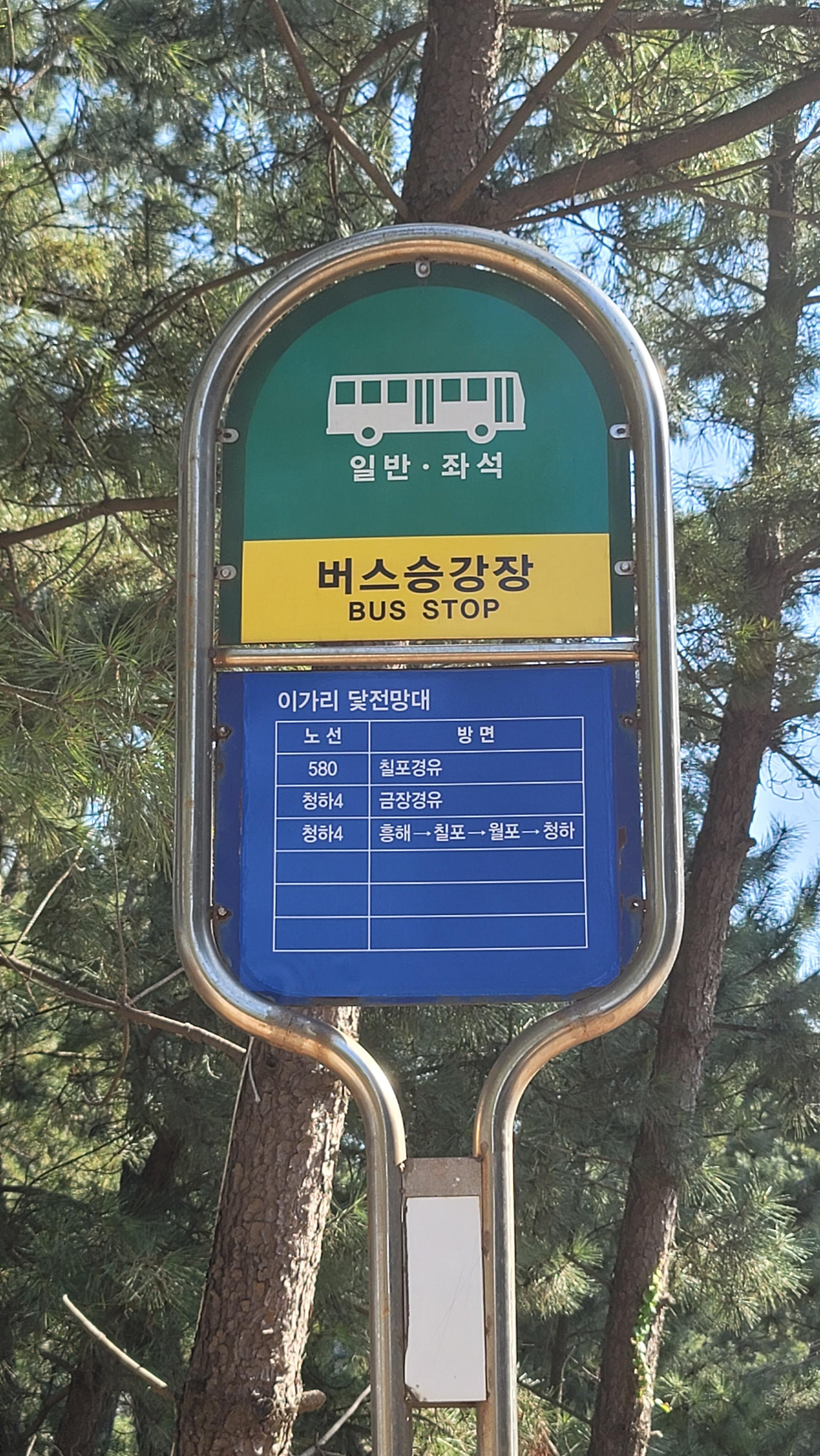 포항버스 이가리닻전망대 운행버스 580번, 청하4 운행버스 정보 입니다.